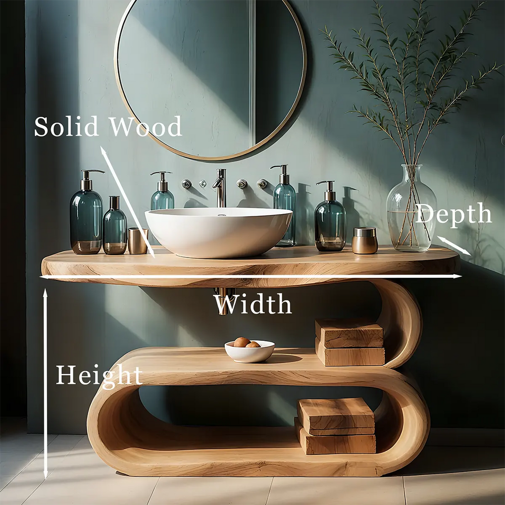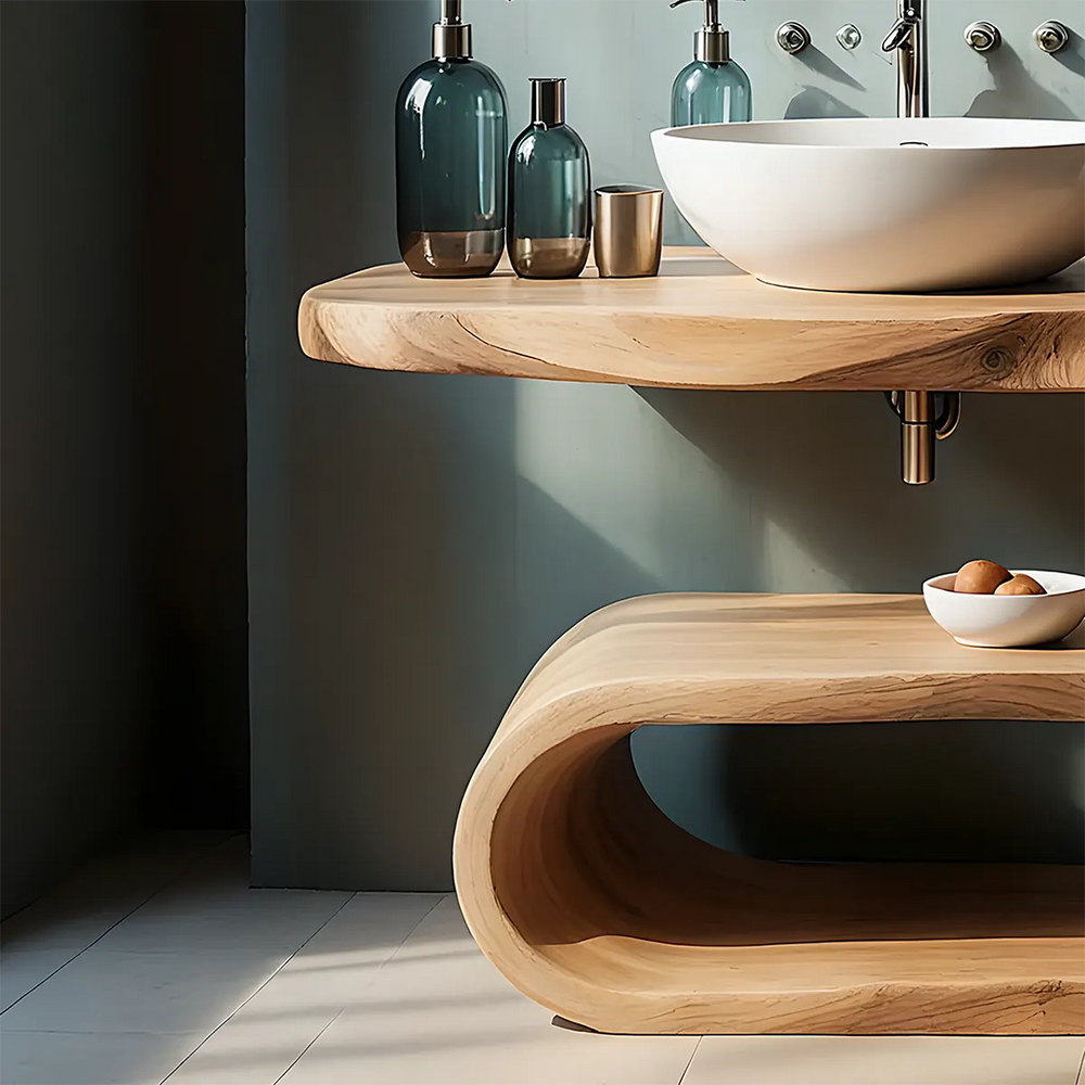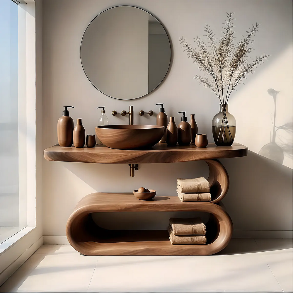 WaveArc Vanity – Solid Wood Bathroom with Zen Curves